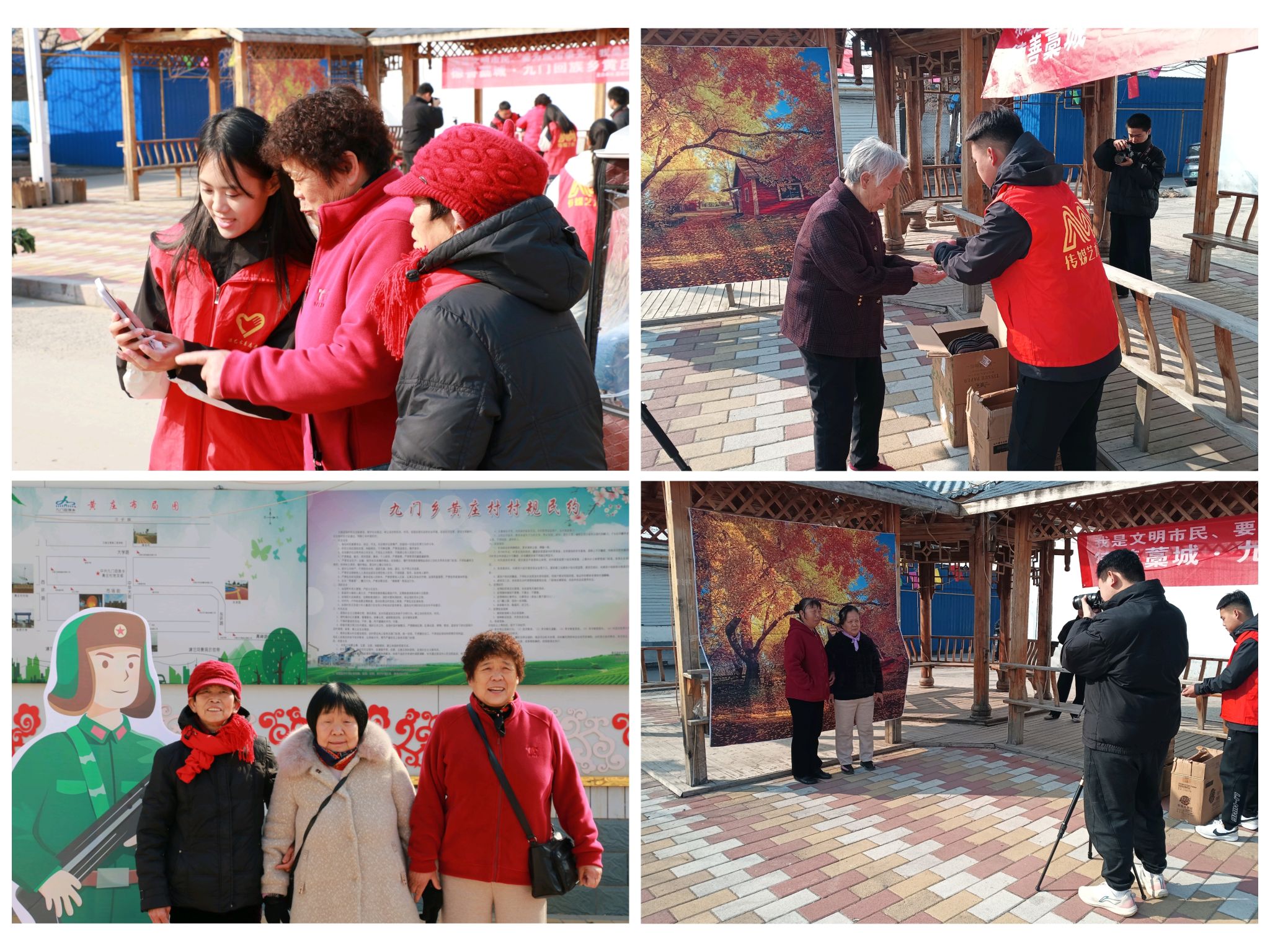 在黄庄村村委会,师生志愿者们依托专业优势,搭建起临时摄影棚,为村里60岁以上的老人免费拍摄证件照和生活照。证件照将用于老人办理医保、社保等事务,生活照则记录下他们与家人、邻里互动的温馨瞬间。志愿者们耐心为老人整理衣襟、调整姿势,用镜头捕捉他们的笑容。活动现场共为50余位老人拍摄照片100余张。