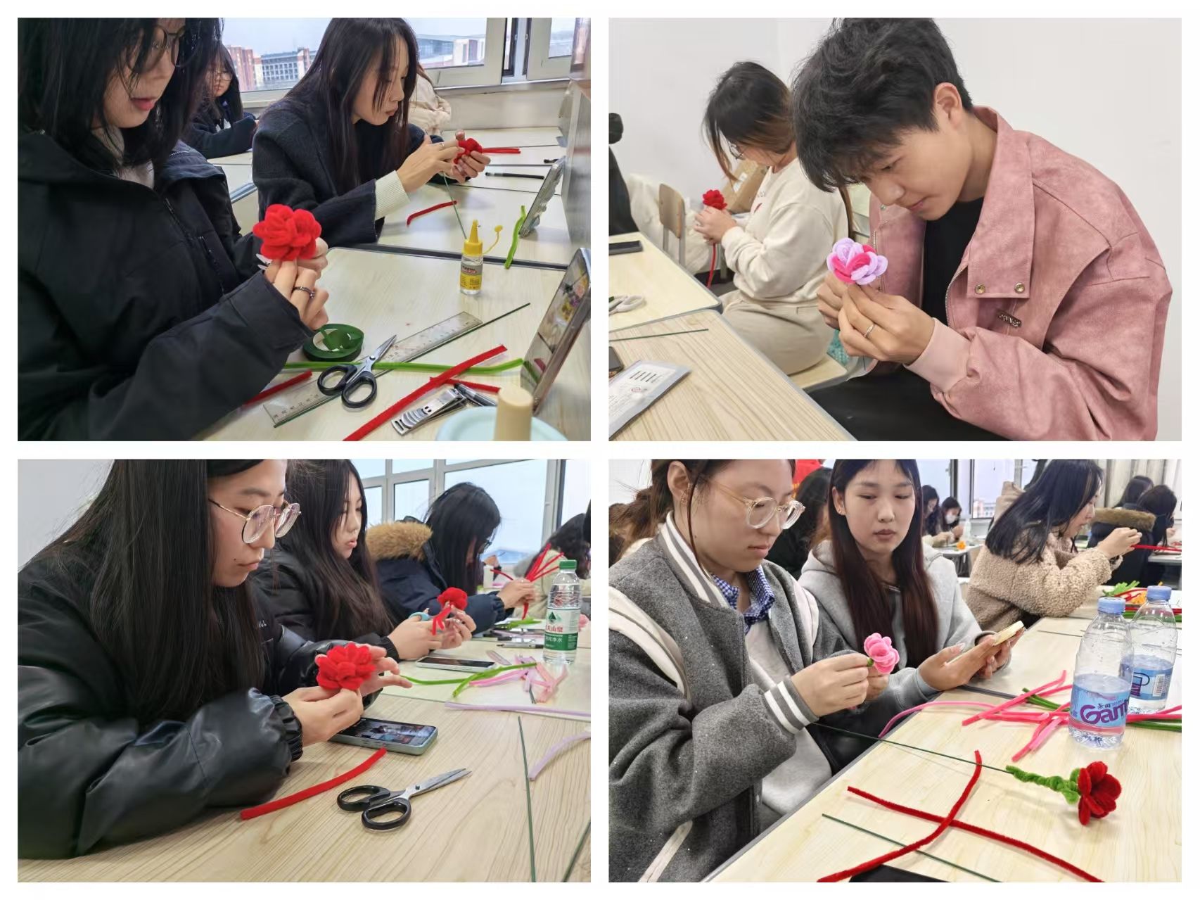 举行“锋”华正茂,手工献花感恩女教师活动。3月7日,经济贸易系组织同学开展了一场意义非凡的手工活动,学子们挑选心仪的绒条,灵巧地将绒条弯折成花瓣,用实际行动表达对女教师的尊重与感恩,将雷锋精神中关爱他人的内涵融入到日常生活点滴之中。此次活动,不仅仅是一次简单的节日庆祝,更是搭建起师生之间情感交流的桥梁,让女教师们在忙碌的工作中感受到片刻的温馨与美好,也让同学们学会感恩,懂得尊重和关爱身边的女性。在雷锋精神的指引下,这样的温暖与美好将在校园里不断延续。