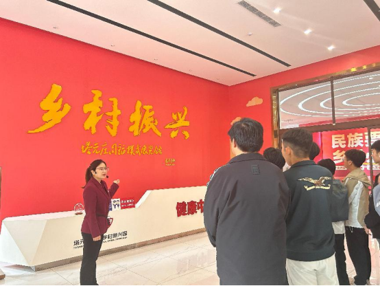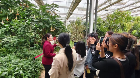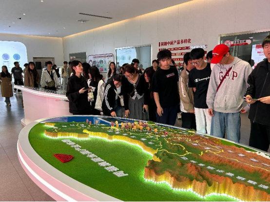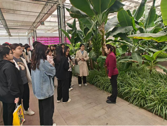 师生们在讲解员的带领下,先后参观了塔元庄同福智慧农场、中国梦主题展厅和振兴模式展馆。在智慧农场里,师生共同参观了现代农业区、南果北种区、原粮种植区、研学科普区和果菜生产区等五个区域,了解到人工光植物工厂、鱼菜共生、气雾培等先进的农业设施和技术,见证了现代化农业的魅力和乡村振兴的活力。学生们表现出浓厚的兴趣,以及对未来职业发展的期待。