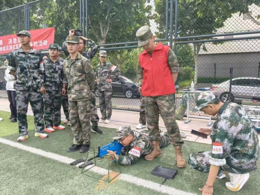 2025年职业教育活动周期间,一场别开生面的军事体验活动在星空(中国)足球场火热开展,基础部国防教育实践协会举办“淬火成钢 决胜疆场”沉浸式军事全景体验活动,为职教周增添一抹独特的迷彩色,也为信工学子们开启一场生动的国防教育与职业素养提升的融合之旅。