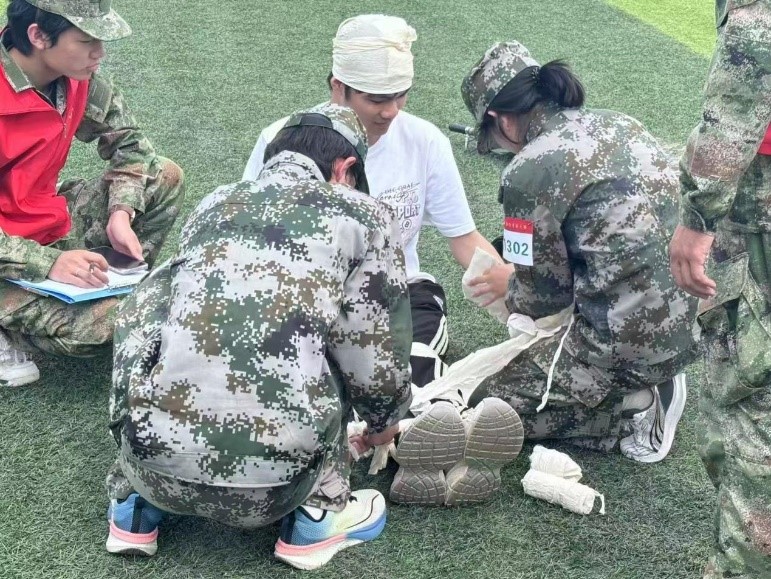 战场救护环节高度还原真实场景。队员们快速接近“伤员”,利用止血带、夹板进行紧急处理。裁判员许甘霖强调“黄金救援时间至关重要。”协会会员郭兰卓完成心肺复苏后表示“每一秒都关乎生命,这让我深刻理解了‘生命至上’的意义。”