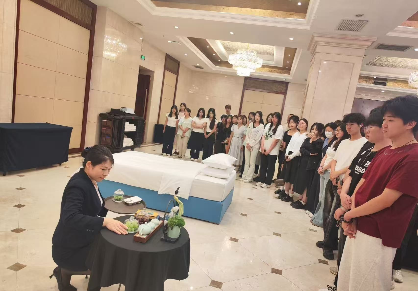 5月21日下午,管理系酒店管理专业40余名师生走进河北云瑧世纪大饭店开展实践教学活动。此次活动旨在让学生深入了解酒店行业的发展现状、企业文化及职业前景,通过经验分享、职业体验、技能观摩等多种形式,激发学生对专业的热爱,增强职业认同感。