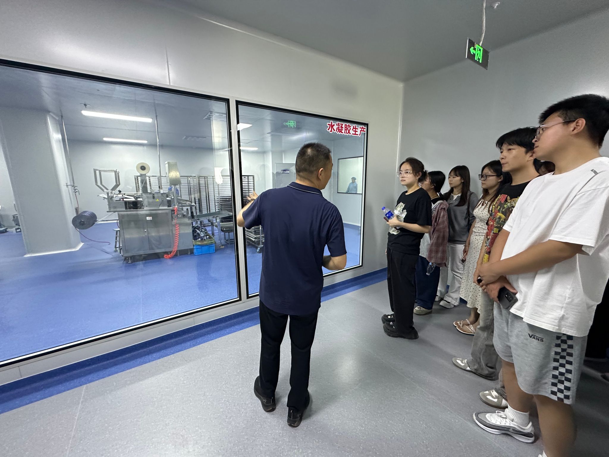 认知实习的第二站是集团的现代化洁净无菌工厂。在企业负责人的组织下,由专业的一线工作人员,带领学生先后到研究院、塑封车间、凝胶车间、冰贴车间以及新厂区办公楼进行学习。企业专家详尽阐述了研究院的未来规划、各车间生产线产品,随后引领众人参观了充满科技魅力的新陈列馆,使师生们对企业生产流程及未来蓝图有了更为直观深刻的认知。