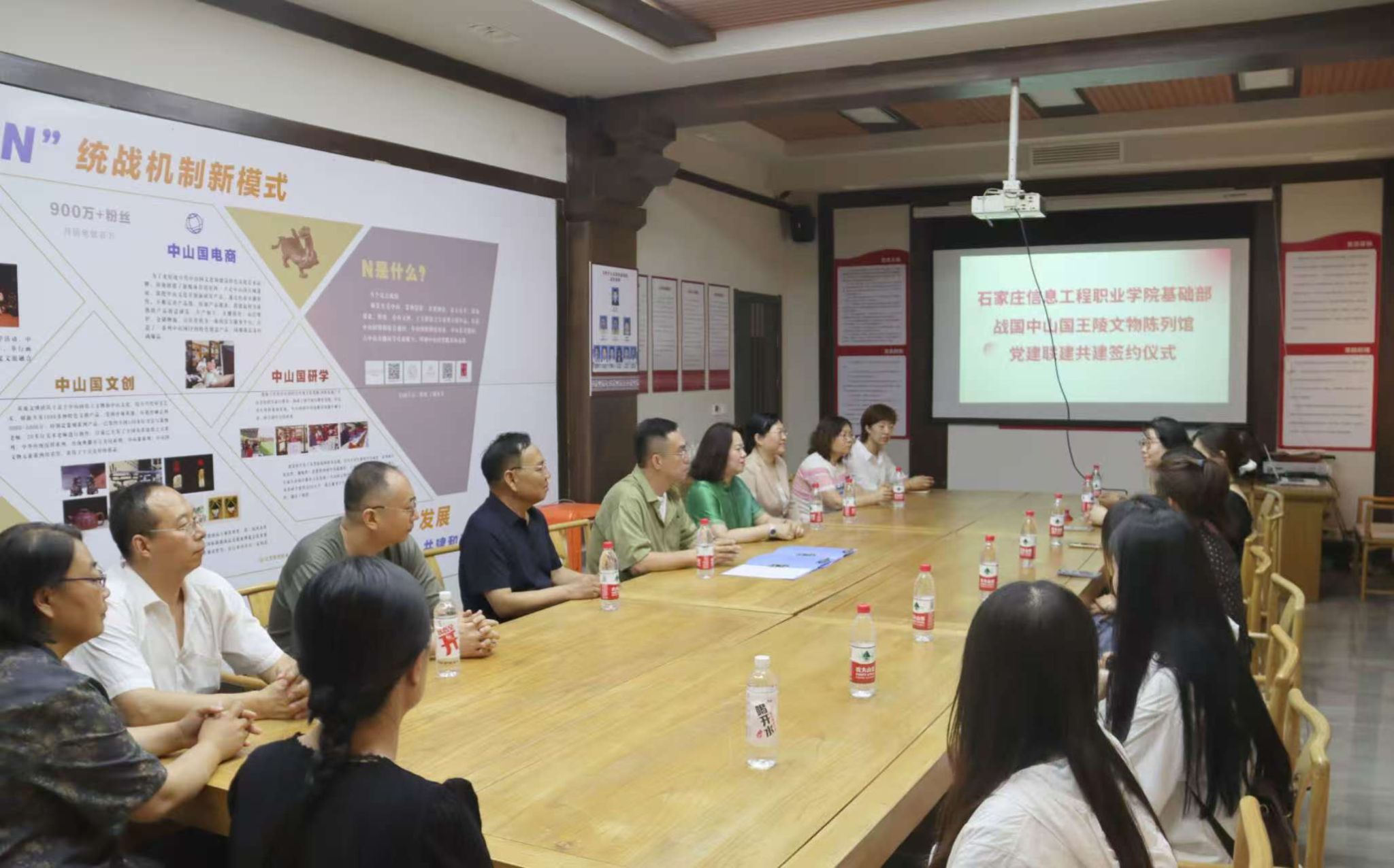 6月13日,基础部与战国中山国王陵文物陈列馆签署党建联建共建协议。河北省中山国文化研究会秘书长、陈列馆副馆长柴婷婷,基础部党总支书记张娜、主任姜涛,以及基础部党总支委员、支部书记和学生代表共20余人出席签约仪式。