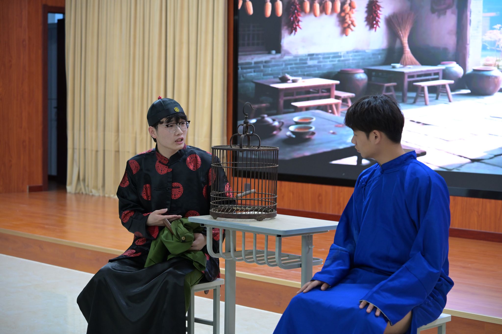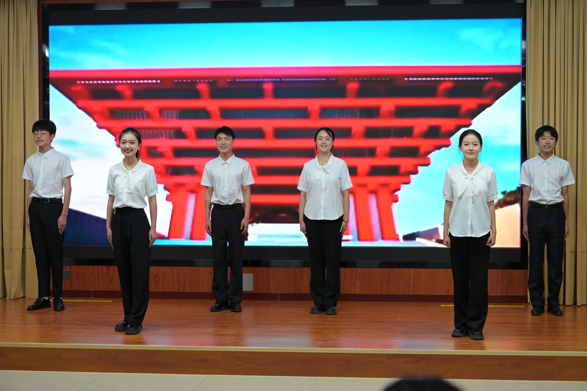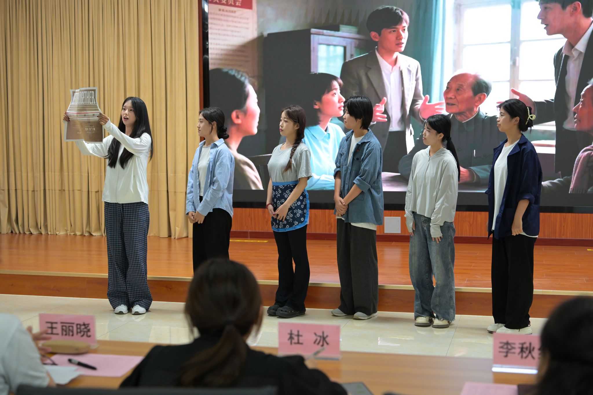 活动在激昂的开场白中拉开帷幕。精彩纷呈的学生节目轮番上演,将宏大理论与青春实践紧密结合。网络与通信工程系的《枫桥浦江正当时》,溯源“枫桥经验”与领导下访接访的“浦江经验”,深情演绎“群众在哪里,心就到哪里”的为民情怀。生动诠释了全过程人民民主。计算机应用系的作品《药方》,以穿越时空的笔触,展现仁人志士为民族复兴开出的精神“药方”,昭示“苟利国家生死以”的担当代代相传。经济贸易系与管理系的《净界行动》,以戏剧张力直击贪腐,展现正义力量涤荡暗流的决心,彰显反腐倡廉关乎国运兴衰的深刻主题。计算机应用系的《塞罕坝精神代代传》,用感人至深的情景剧,再现三代塞罕坝人将荒漠变林海的绿色史诗,让“绿水青山就是金山银山”的理念深入人心。传媒艺术系的《知识筑梦乡村》与计算机应用系的《共同走向幸福路》聚焦乡土巨变。描绘大学生用新技术推动乡村振兴的美好画卷。网络与通信系的《铮言护国》再现巴黎和会上中国外交官“宁为玉碎,不为瓦全”的铮铮铁骨;计算机应用系的《阳光拆迁》则聚焦基层治理,展现群众维护公平正义的力量。