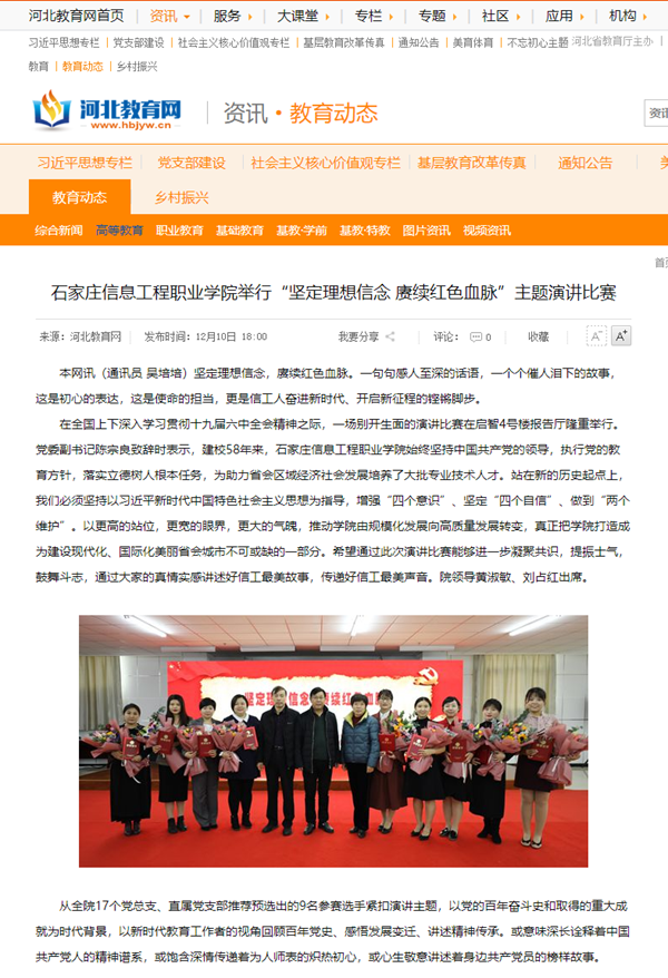 石家庄信息工程职业星空(中国)举行“坚定理想信念 赓续红色血脉”主题演讲比赛