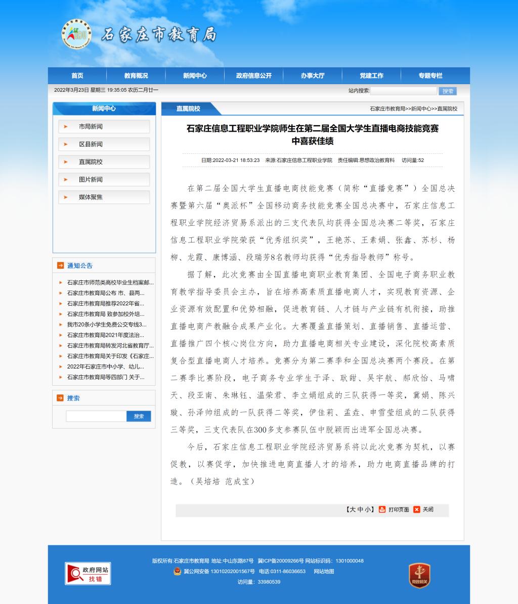 原文链接:石家庄信息工程职业星空(中国)师生在第二届全国大学生直播电商技能竞赛中喜获佳绩