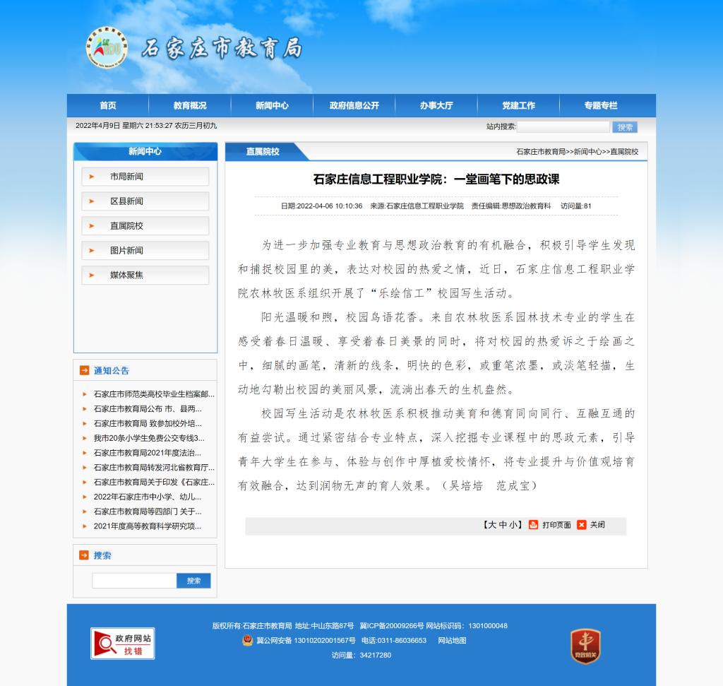 石家庄信息工程职业星空(中国):一堂画笔下的思政课