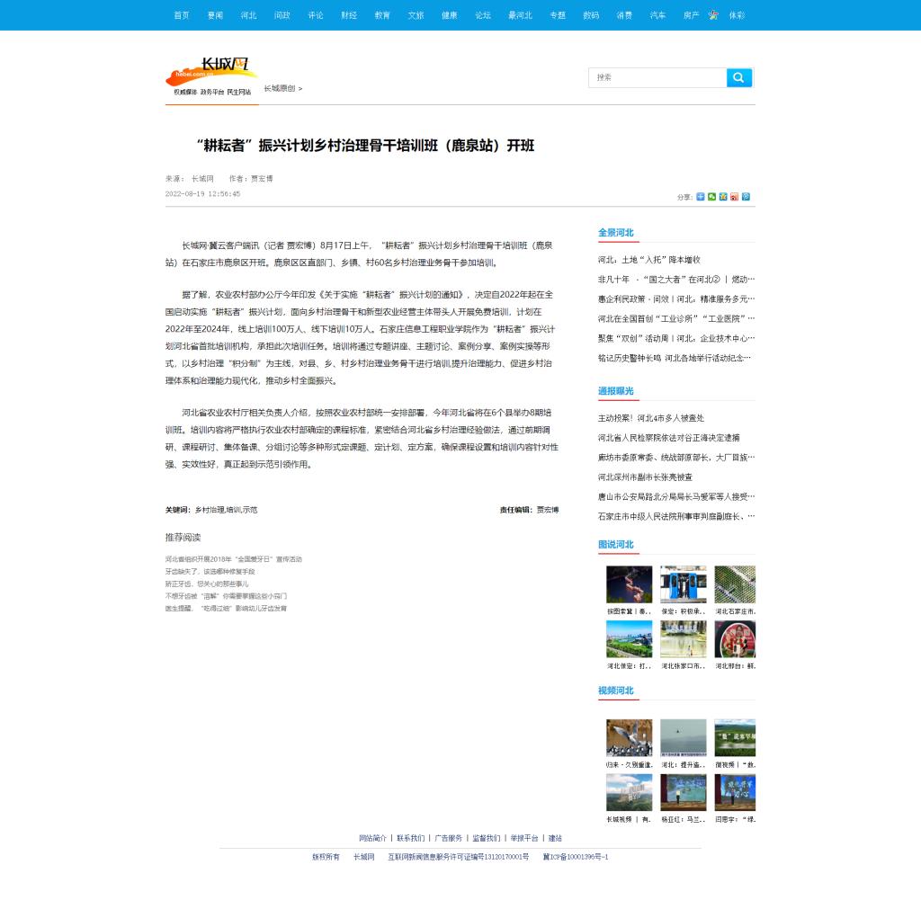 8月17日上午,“耕耘者”振兴计划乡村治理骨干培训班(鹿泉站)在石家庄市鹿泉区开班。鹿泉区区直部门、乡镇、村60名乡村治理业务骨干参加培训。