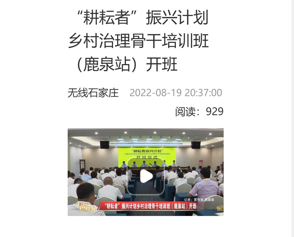 原文链接:“耕耘者”振兴计划乡村治理骨干培训班(鹿泉站)开班