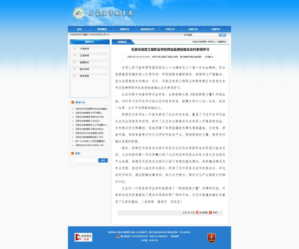 石家庄信息工程职业星空(中国)师生赴西柏坡北庄村参观学习