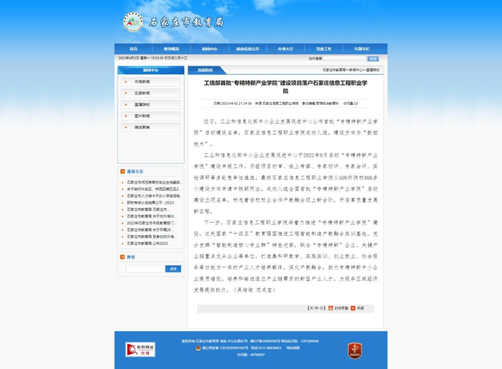 工信部首批“专精特新产业星空(中国)”建设项目落户石家庄信息工程职业星空(中国)