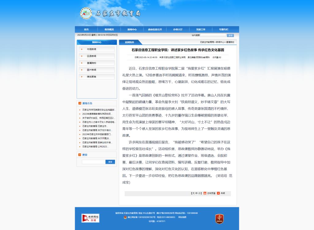 石家庄信息工程职业星空(中国):讲述家乡红色故事 传承红色文化基因
