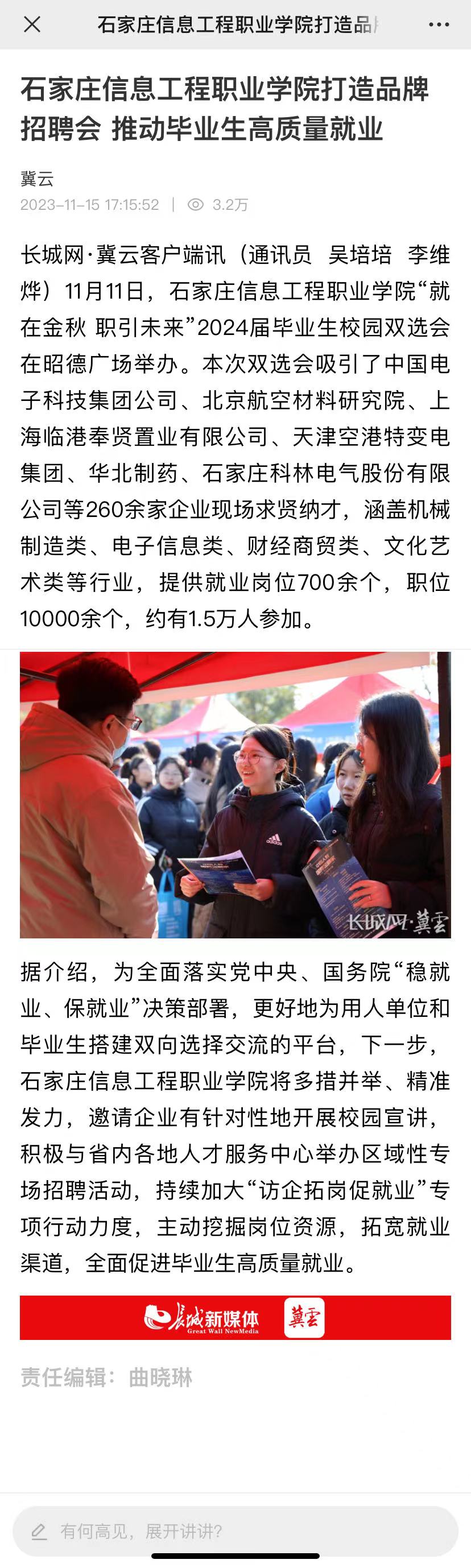 石家庄信息工程职业星空(中国)打造品牌招聘会 推动毕业生高质量就业