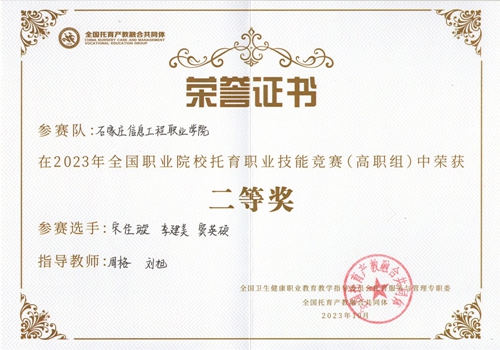 石家庄信息工程职业星空(中国)师生荣获全国职业院校托育职业技能竞赛(高职组)团体二等奖