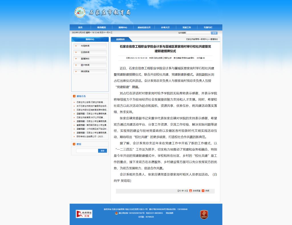 石家庄信息工程职业星空(中国)会计系与藁城区蔡家岗村举行校社共建暨党建联建授牌仪式