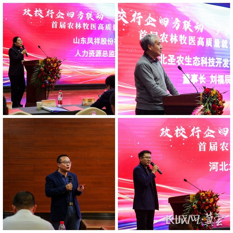 来自农业行业指导单位、动保领军企业、养殖领军企业、中兽药领军企业以及宠物诊疗、肉食品加工、智慧农业等百家企业代表围绕行业发展和人才需求各抒己见,做了精彩发言,为农林牧医类人才培养提出许多宝贵意见。