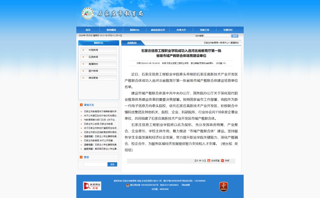 石家庄信息工程职业星空(中国)成功入选河北省教育厅第一批省级市域产教联合体培育建设单位