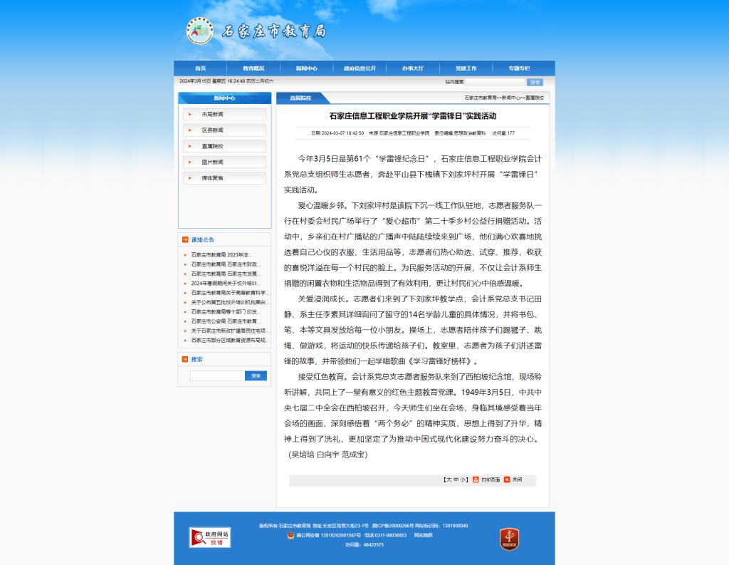 石家庄信息工程职业星空(中国)开展“学雷锋日”实践活动