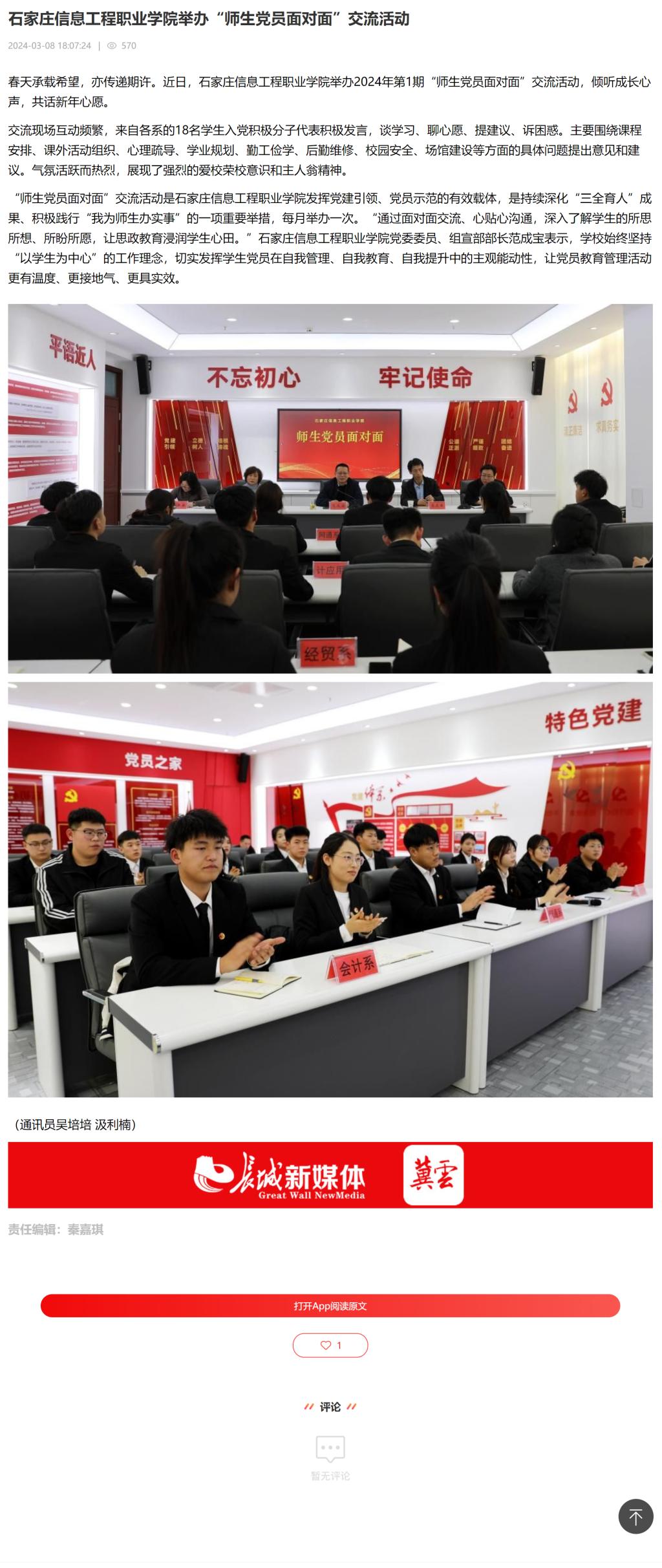 石家庄信息工程职业星空(中国)举办“师生党员面对面”交流活动
