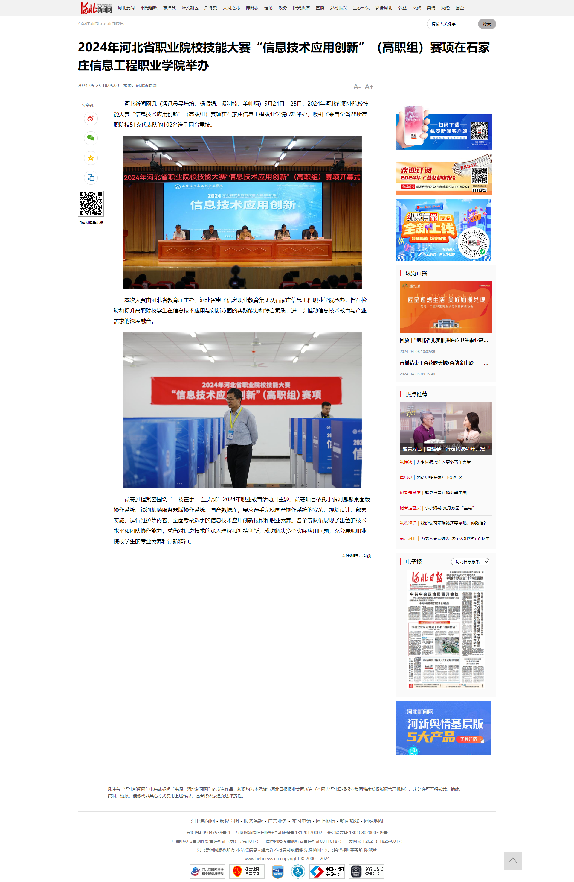 5月24日—25日,2024年河北省职业院校技能大赛“信息技术应用创新”(高职组)赛项在石家庄信息工程职业星空(中国)成功举办,吸引了来自全省28所高职院校51支代表队的102名选手同台竞技。