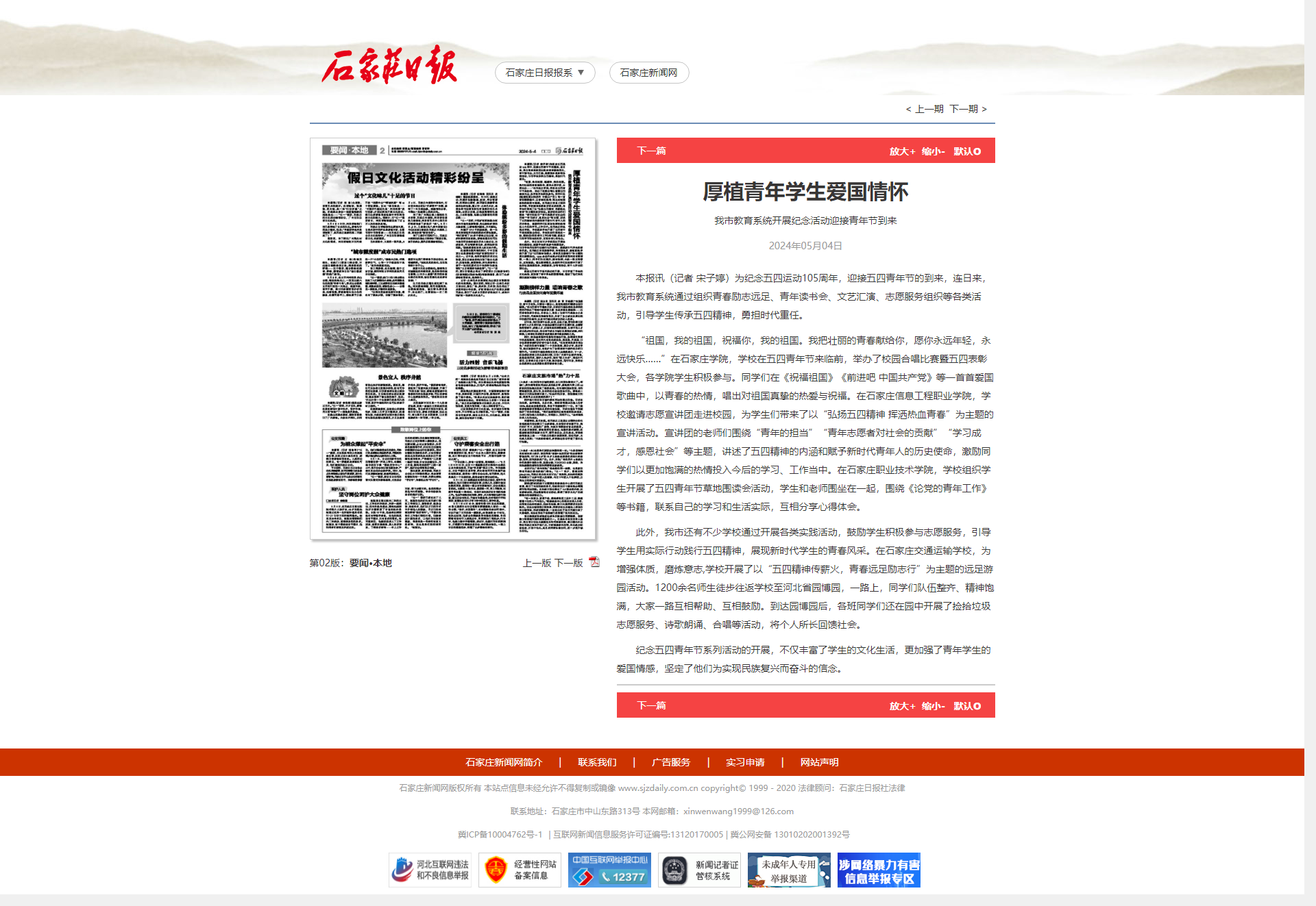 为纪念五四运动105周年,迎接五四青年节的到来,连日来,我市教育系统通过组织青春励志远足、青年读书会、文艺汇演、志愿服务组织等各类活动,引导学生传承五四精神,勇担时代重任。