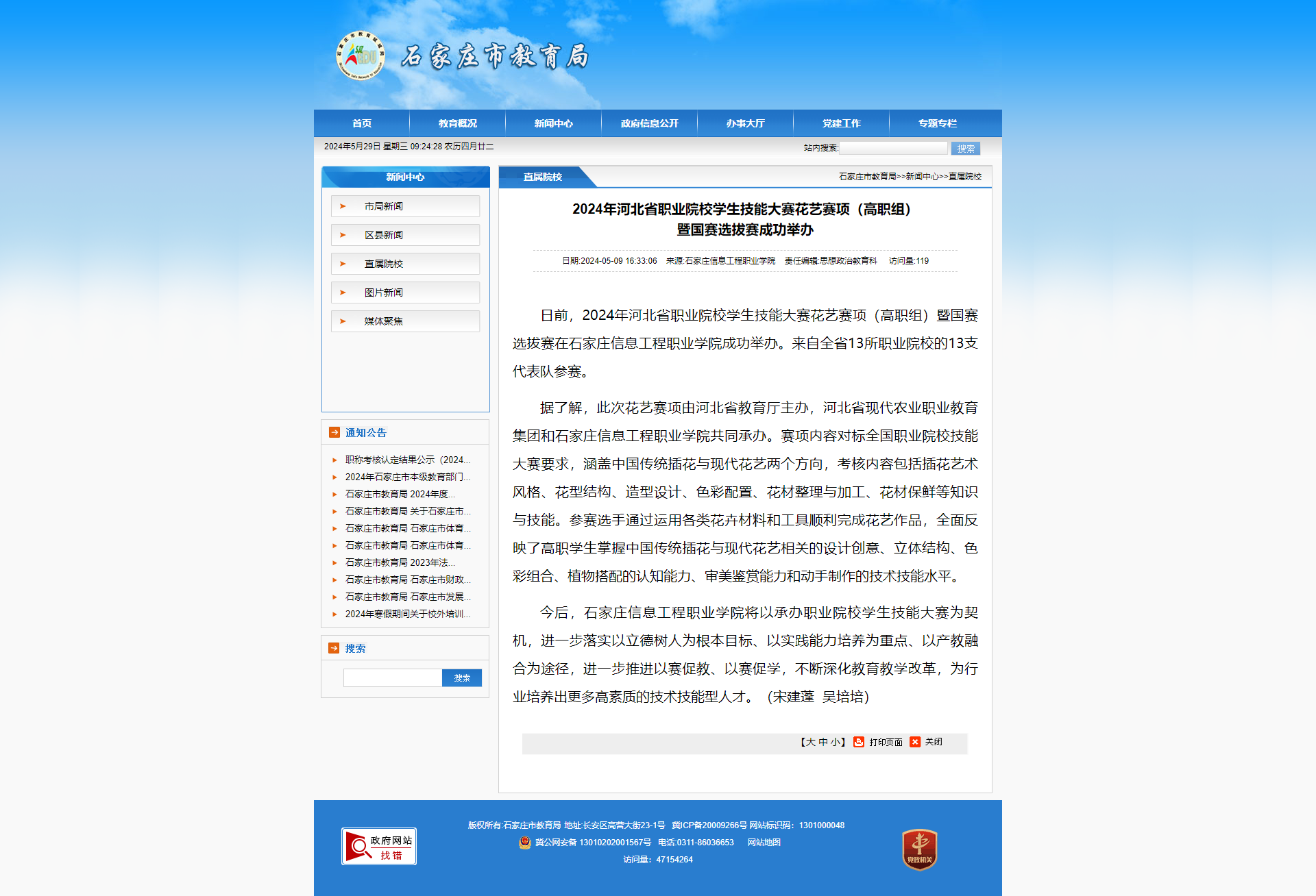 日前,2024年河北省职业院校学生技能大赛花艺赛项(高职组)暨国赛选拔赛在石家庄信息工程职业星空(中国)成功举办。来自全省13所职业院校的13支代表队参赛。