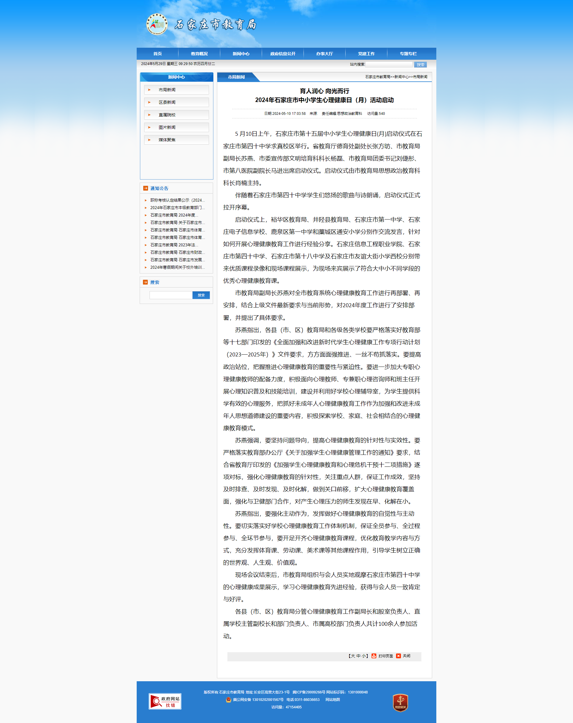 原文链接:育人润心 向光而行 2024年石家庄市中小学生心理健康日(月)活动启动