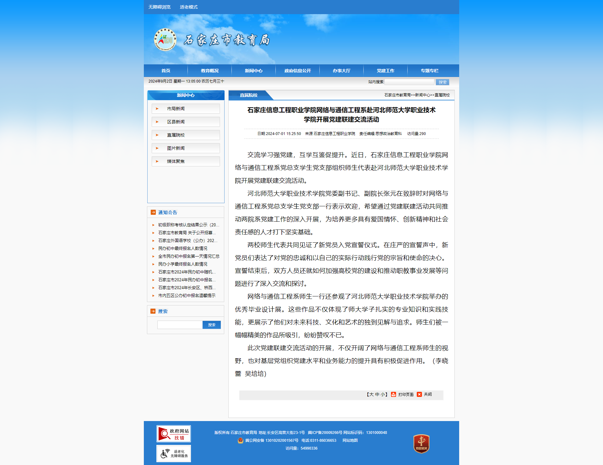 石家庄信息工程职业星空(中国)网络与通信工程系赴河北师范大学职业技术星空(中国)开展党建联建交流活动