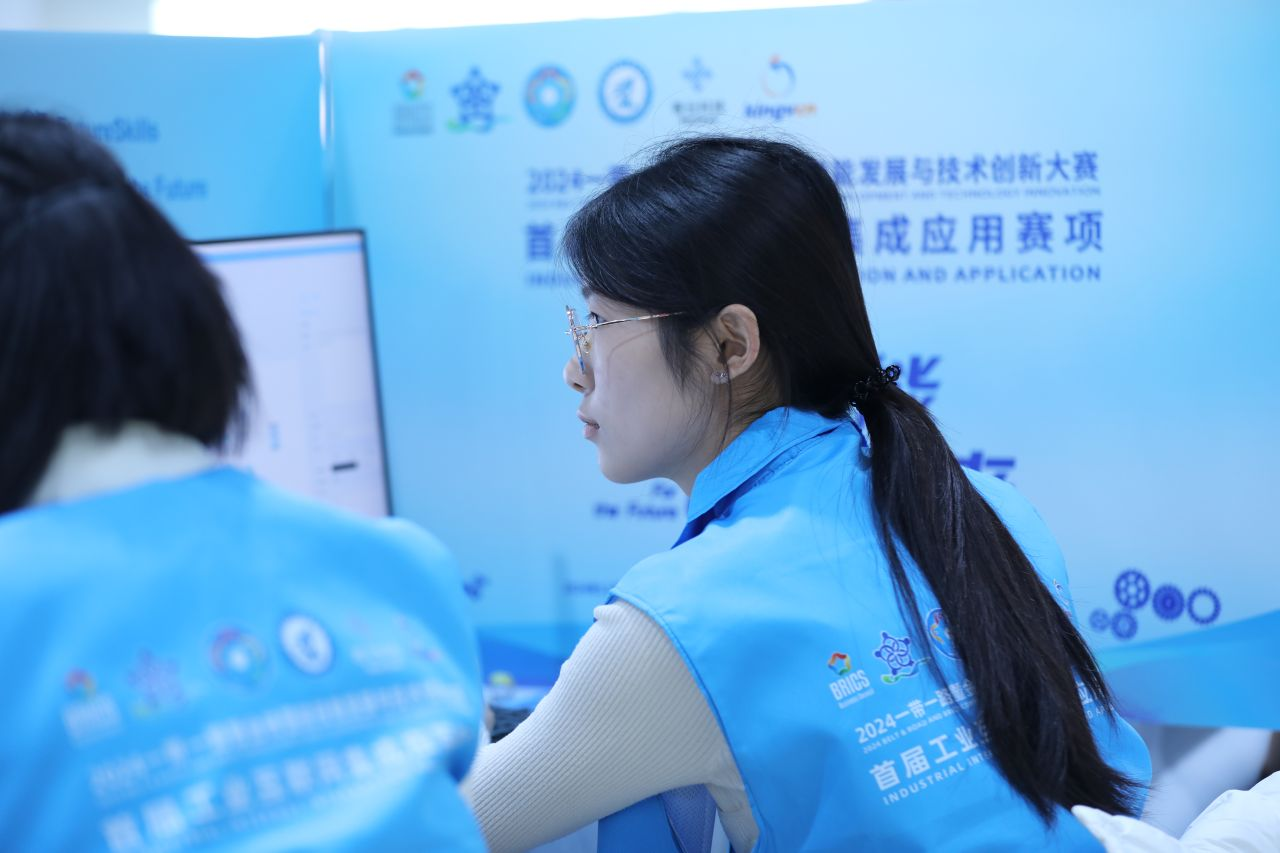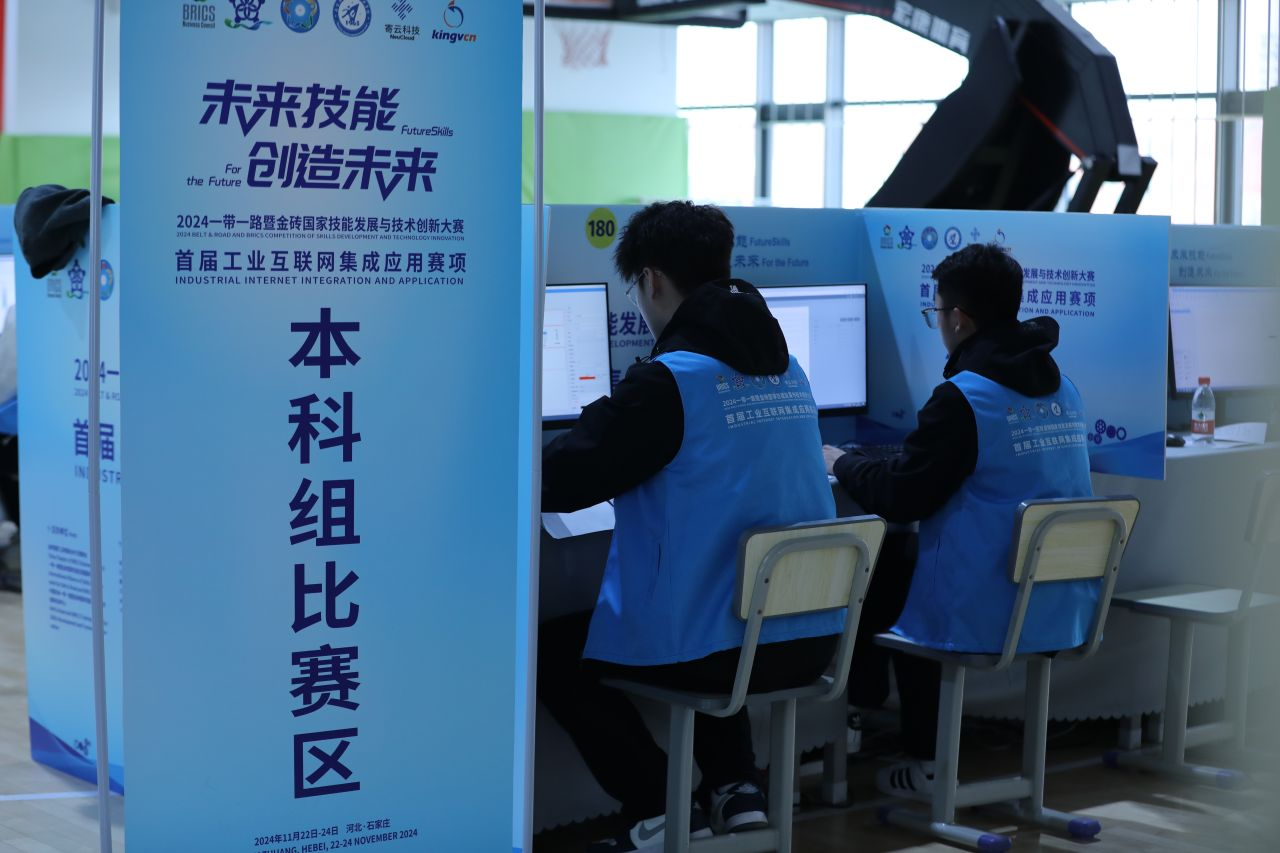 11月22日—24日,2024一带一路暨金砖国家技能发展与技术创新大赛首届工业互联网集成应用赛项在石家庄信息工程职业星空(中国)成功举办。图为比赛现场。(秦磊 摄)