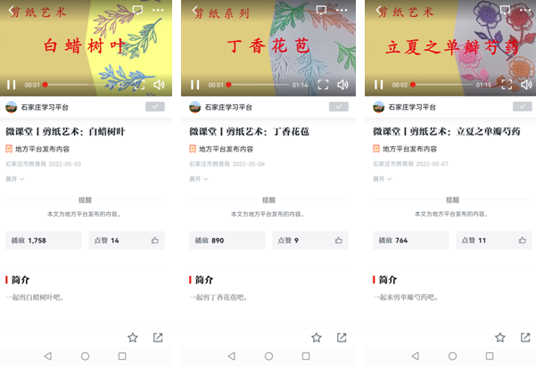 本次活动将持续更新,目前已推送视频近20期。课程从基础的剪纸知识入手,为大家讲解剪纸制作工具的选择、常用技法、经典图案设计等内容,方便大家了解剪纸的制作流程,深入体验民俗艺术,传承和发扬民俗艺术瑰宝。剪纸艺术微课堂也是传媒艺术系2022 年职业教育活动周特色活动之一。