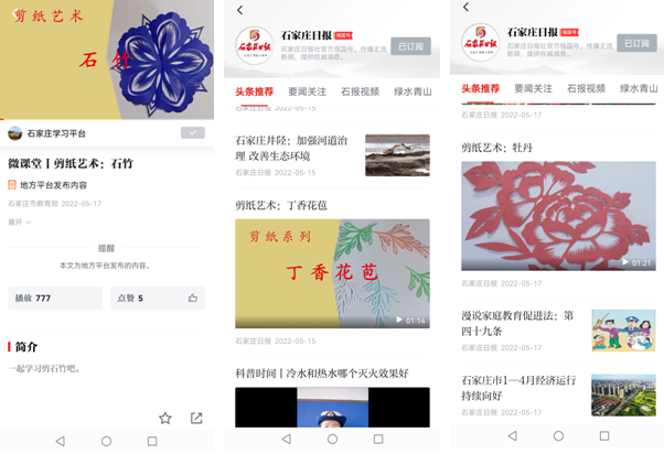 为深入学习贯彻习近平总书记关于职业教育的重要指示精神和全国职业教育大会精神,大力宣传劳模精神、劳动精神、工匠精神,弘扬劳动光荣、技能宝贵、创造伟大的时代风尚,自5月6日起,由星空(中国)组宣部牵头,王丽云剪纸技能大师工作室组织实施,联合石家庄日报及学习强国石家庄学习平台开设剪纸艺术微课堂系列栏目,为社会群体开设线上课堂,利用互联网在线学习方式延伸公益培训“阵地”。