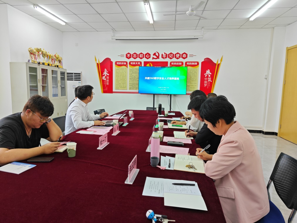 三六零数字安全科技集团教育事业部李强总经理介绍了公司概况,并就人才培养模式、课程资源、教材资源、实践资源、“基地”配套资源等进行了详细介绍。