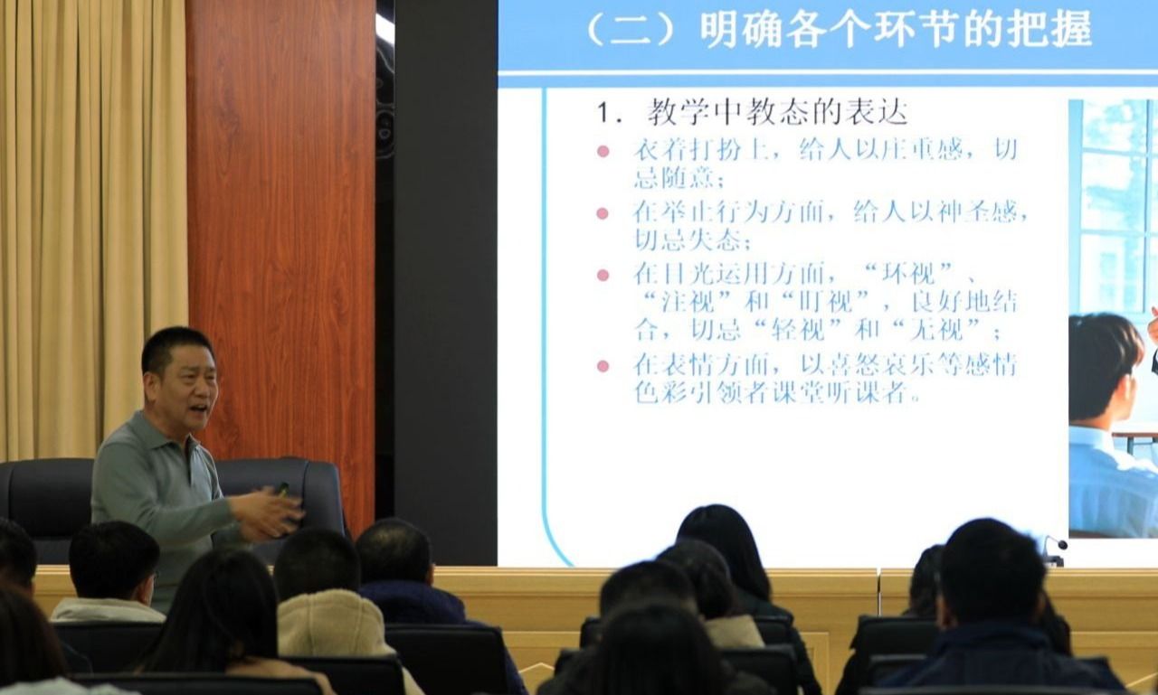 生涯发展与就业指导教研室主任郑娇老师以《学高为师,身正为范》为题,对新入职教师课堂教学活动中的仪表、仪态等进行培训。