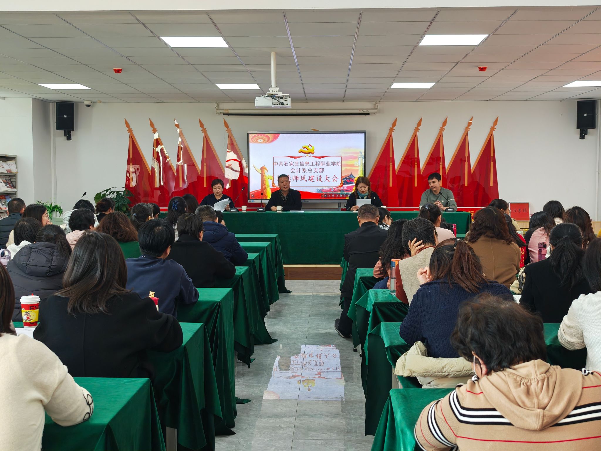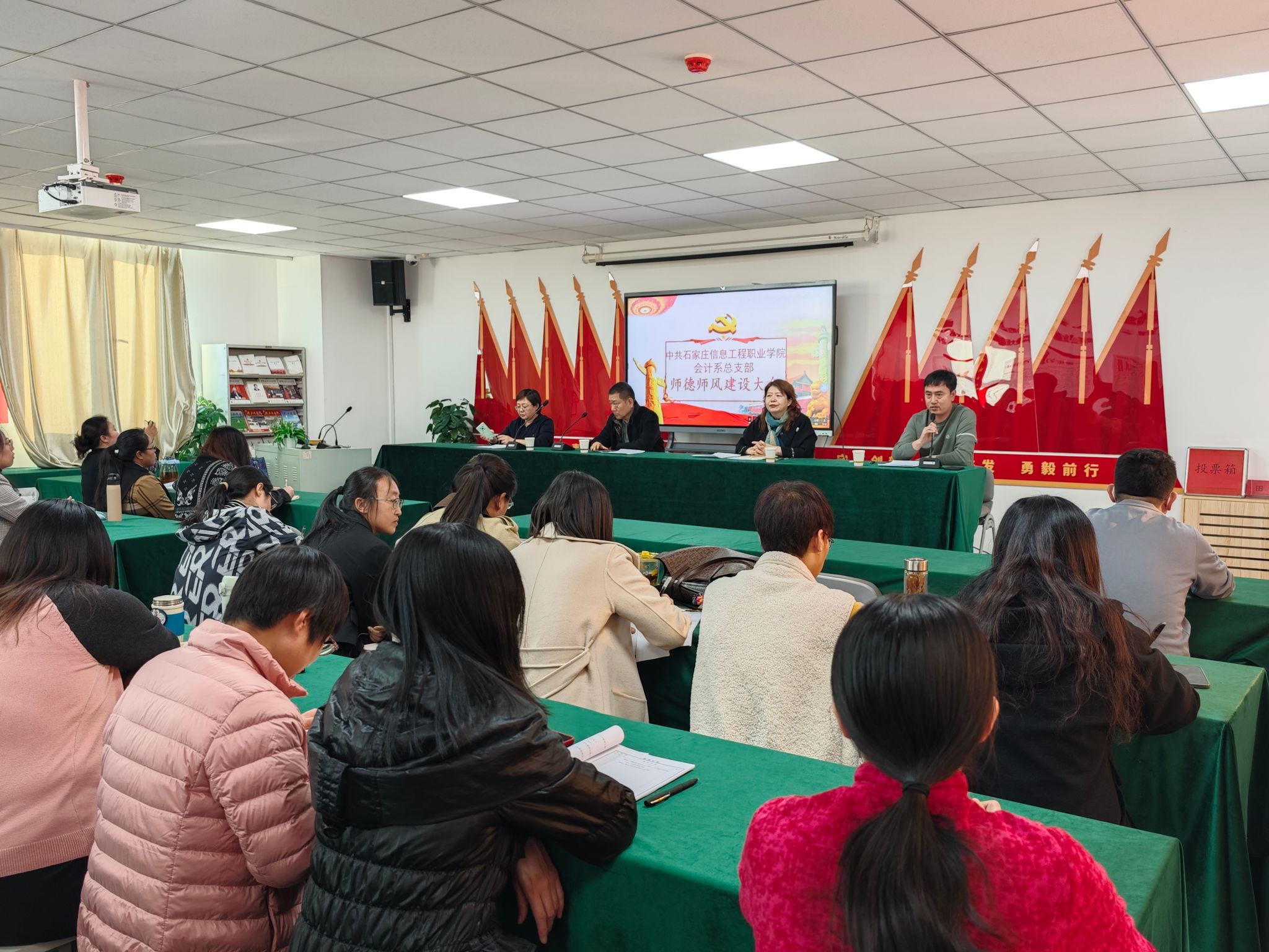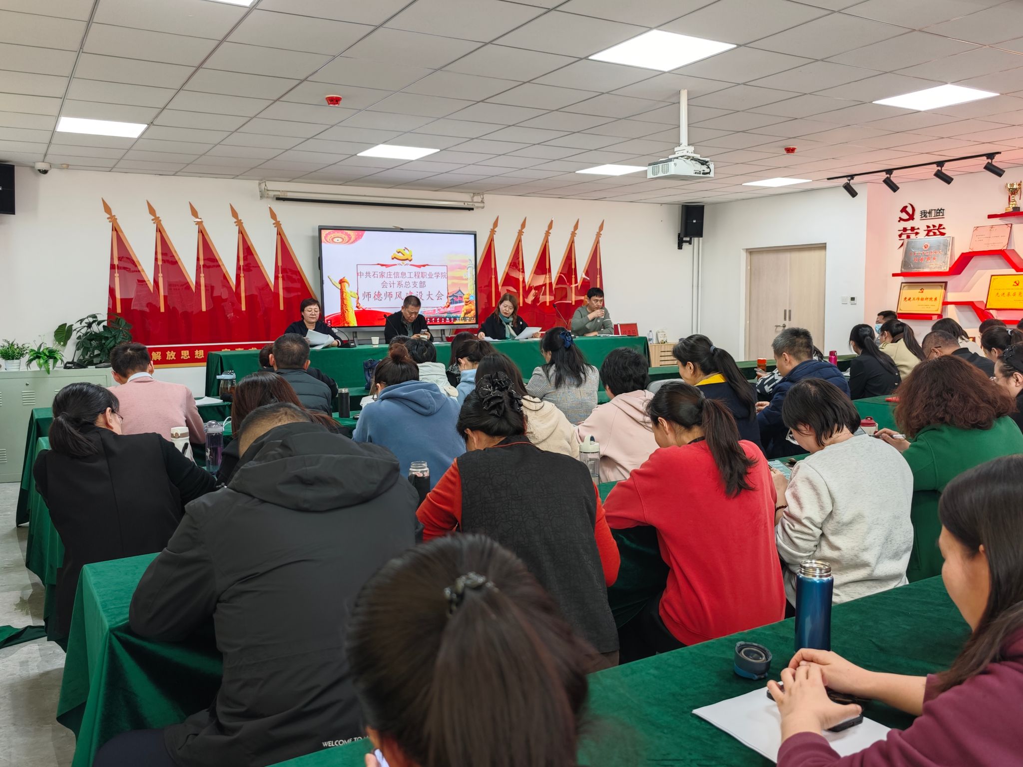 12月5日下午,会计系在知新3号楼446党员活动室隆重召开了师德师风建设大会。本次会议由会计系副书记王云科主持,会计系党总支书记田静、系主任李素其、系副主任沈丽以及全体教职工共同出席了此次大会。